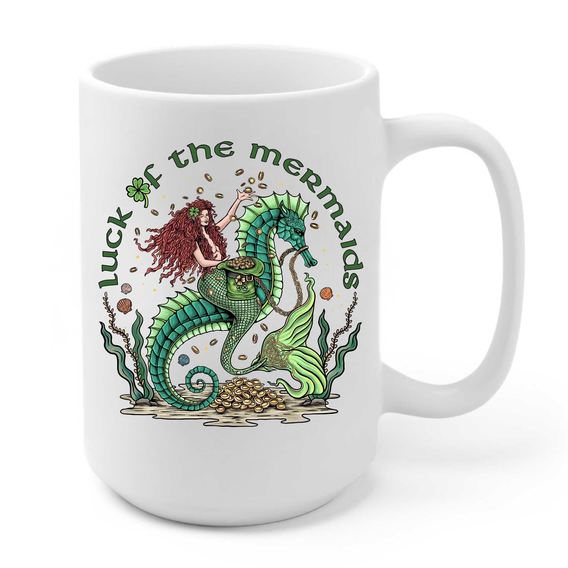 Catch the luck of the Irish mermaid style! This festive 15oz mug blends St. Patrick's Day spirit with coastal whimsy, making it the perfect vessel for your lucky brew. Featuring playful mermaid-themed design elements with a holiday twist, it's ideal for celebrating the season with personality. Dishwasher-safe ceramic keeps your luck intact through countless coffee runs. A fun gift for anyone who loves mermaids, St. Patrick's Day, or just a little extra magic in their mug.