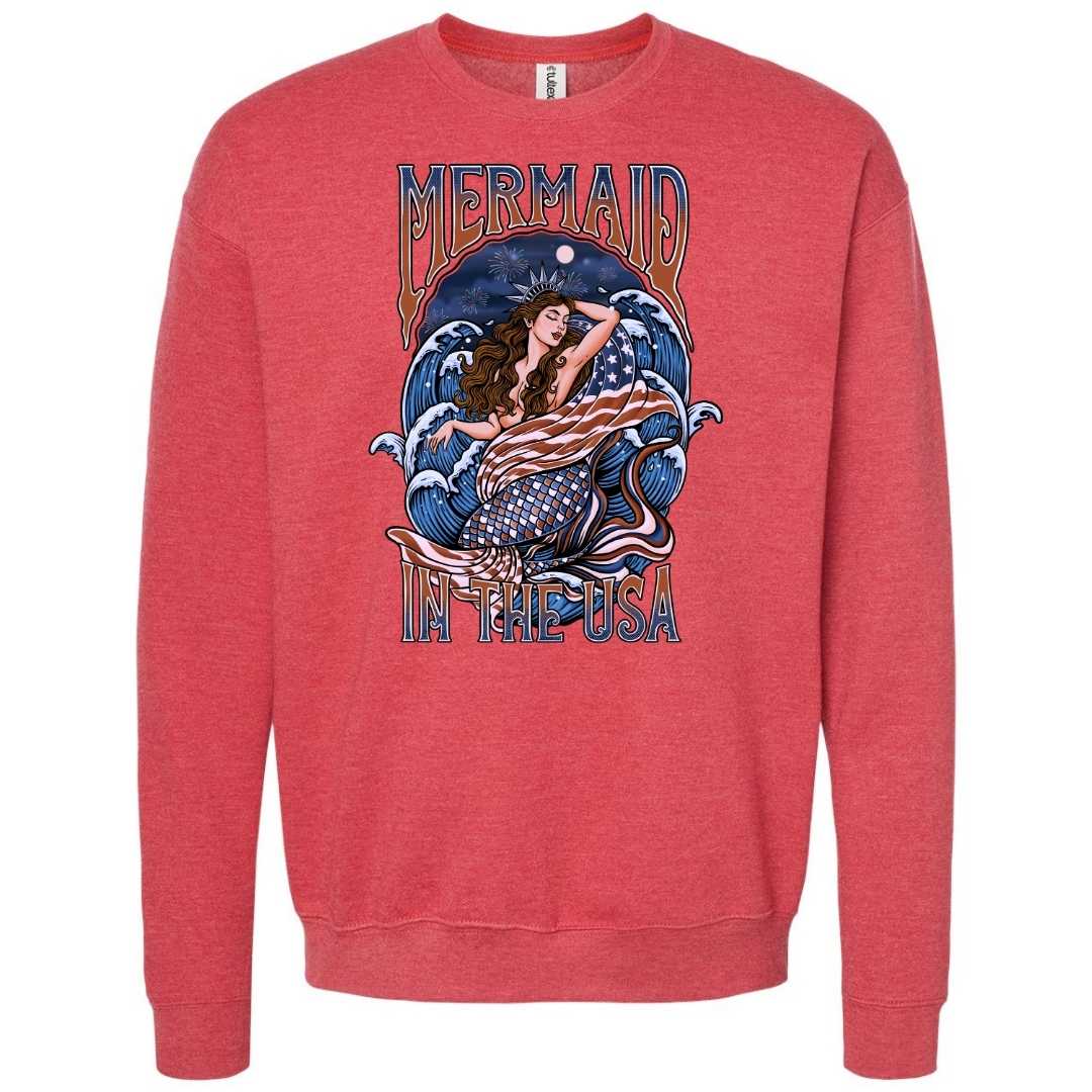 Lady Liberty Crewneck Sweatshirt (Heather Red) - Mountains & Mermaids