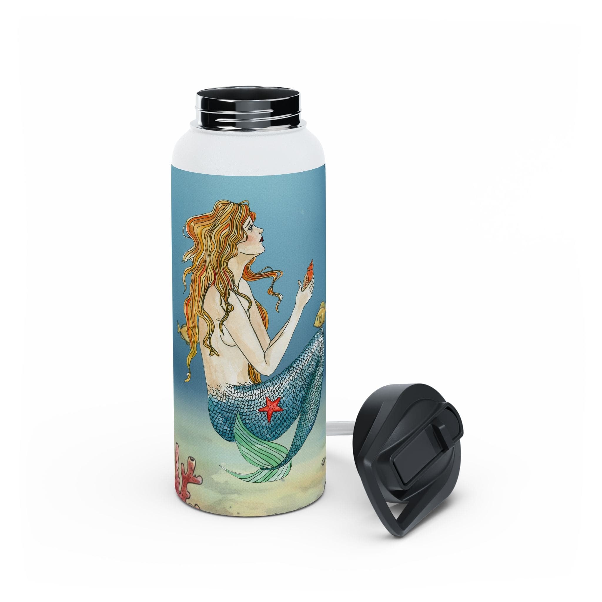 Quench your thirst with a touch of undersea magic. This enchanting Vintage Mermaid 32oz water bottle features a beautiful, full-wrap illustration.